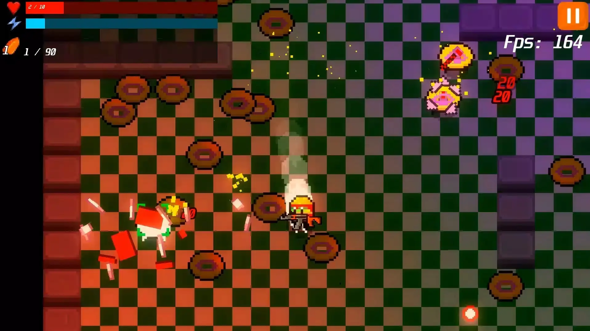 4、战斗中会随机出现闪着光芒的武器箱,控制角色接触后即可切换为新武器,例如霰弹枪适合近距离清理群体,而激光枪则能对直线上的多个敌人造成伤害,根据当前战况灵活选用。