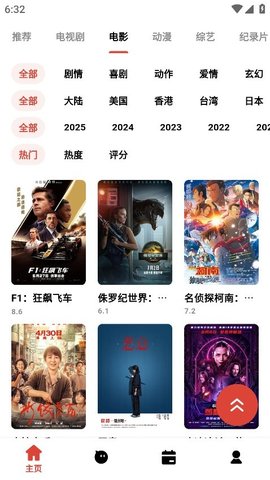 1、启动程序后首先会进入内容推荐页面,此处展示了根据近期热度排序的各类节目,上下滑动可以浏览不同分类的推荐内容。