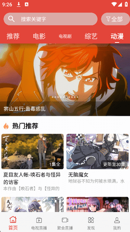 1、进入应用后,首页会展示近期热门的影视内容,左右滑动可以浏览不同分类的推荐作品。