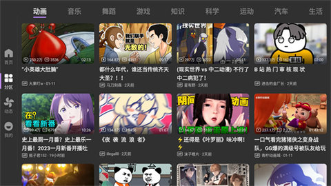 2、在主界面导航栏切换到分区视图,通过方向键浏览动画、番剧、国创等垂直内容分类,按确认键进入具体分区页面。