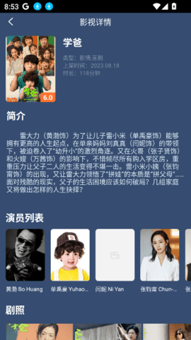 2、在详情页面下滑至演职人员栏目,点击演员头像可查看其参演的所有作品列表。