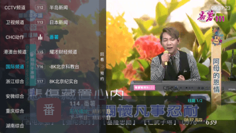 1、首次启动后会显示频道分类导航,左右移动选择键可以浏览不同类别的电视节目。