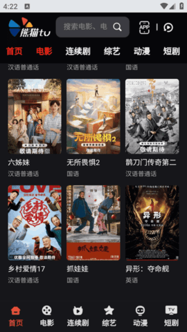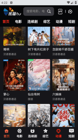 1、首次启动后可在首页浏览推荐内容轮播图,左右滑动查看不同分类的热门节目展示。