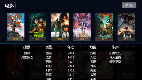 2、在搜索框输入影片关键词时,系统会实时显示关联结果,点击右侧筛选图标可按年份、地区、评分进行精确查找。