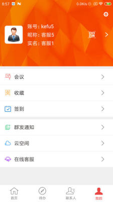 3、个人中心模块包含会议管理、收藏夹、签到记录等多项个人工作管理工具。