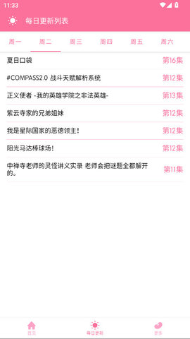 3、持续更新的内容库始终保持与日本同步的最新番剧,让观众在第一时间就能观看到新鲜出炉的动漫剧集。