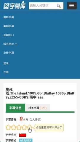 1、在字幕库中键入想要观看的影片名称或相关关键词,浏览出现的字幕列表。