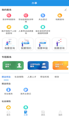 2、就业创业板块提供从失业登记到创业补贴申请的全流程指导,形成完整的就业服务链条。