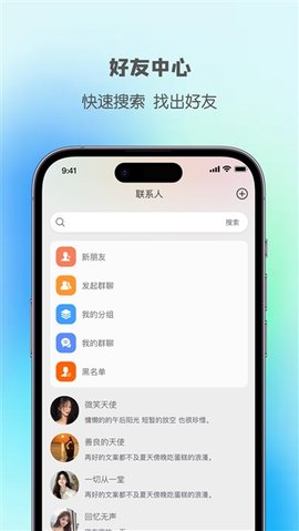 2、在联系人界面可通过组织架构树快速定位同事账号,建立专属对话窗口或临时讨论组。