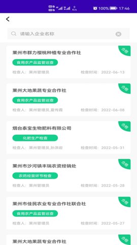 1、监管人员可随时创建新的检查任务,依据细分后的检查事项清单,逐项完成对合作社或生产主体的现场核查与记录。