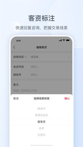 2、软件内置了一套灵活的客户信息标注体系,方便商家根据沟通进展对潜在客户进行分类管理。