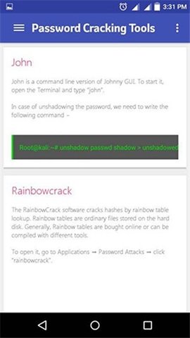 Learn Kali Linux是一款基于Debian的移动端Linux发行版,将专业的安全测试环境带入了移动设备。软件并非简单的编程学习工具,而是集成了数百款经过严格筛选的渗透测试与网络安全审计工具,形成了一个完整的移动工作站。用户无需进行繁琐的初始配置,打开应用即可访问从信息侦察到漏洞利用的全套流程工具,极大降低了安全实践的门槛。其设计初衷是为安全研究者和爱好者提供一个随时可用的专业环境,让深入学习和即时测试成为可能。