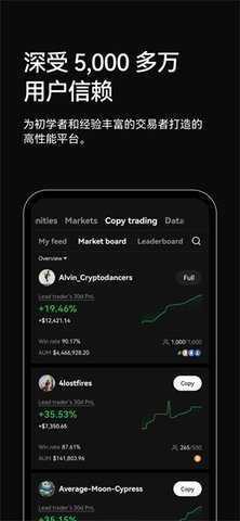 Bitget以合约交易和跟单系统为特色,APP内提供专业交易员跟单功能,适合希望复制成功交易策略的用户。涵盖现货、杠杆及理财产品。