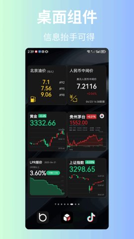 魔方信息是一款整合了金融市场动态与生活实用服务的智能工具,为关注经济趋势的用户提供清晰的数据视角。汇集了股票、黄金、油价、汇率及LPR等关键指标的实时变动,信息呈现直观,更新及时。根据自身关注点灵活调整数据面板,将重要的财经信息直接呈现在手机桌面,方便随时查阅,辅助做出更及时的个人财务决策。