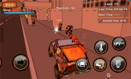 3、武装载具的对抗是核心乐趣,玩家需要在高速行驶中精准操作武器,利用环境陷阱和僵尸潮来干扰对手,策略深度远超传统赛车游戏。