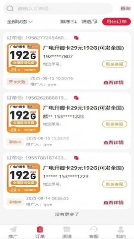 2、所有产生的推广订单都会在此列表呈现,随时查看它们的当前状态与处理进度。