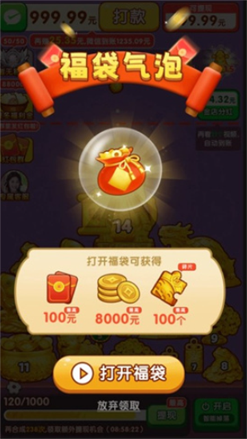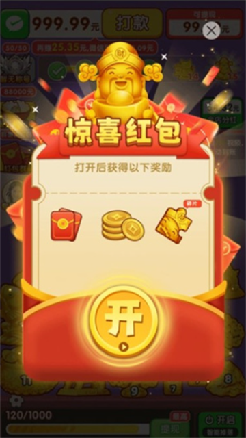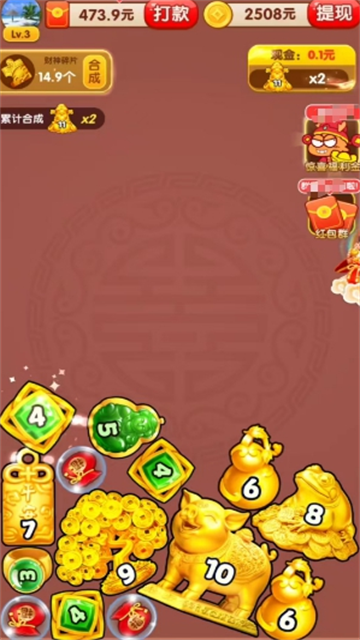 1、游戏的核心合成目标设定为财神像,成功合成这一顶级物品后,玩家将能开启专属的惊喜红包奖励。