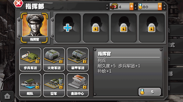 3、指挥部设施升级体系允许玩家根据战局需要,有针对性地强化后勤、情报、工兵等不同部门,从而在战略层面获得持久优势。