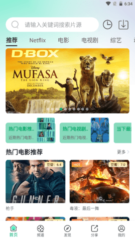 1、进入软件后,首页会展示近期热门和编辑推荐的影片,上下滑动可以浏览更多不同分类的内容。