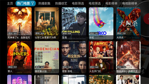 1、启动软件后,在主界面可以看到不同类别的影视推荐,上下键浏览,左右键进入具体分类。