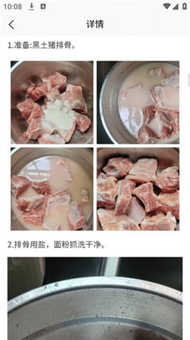 2、每一道菜品的制作过程都被分解为多个步骤,并配有高清实拍图片和关键要点说明,视觉化的引导大大降低了学习烹饪的门槛。