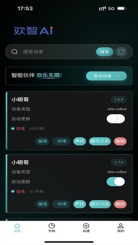1、启动软件后,在主界面找到设备添加选项,系统会自动扫描并列出可连接的智能机器人。