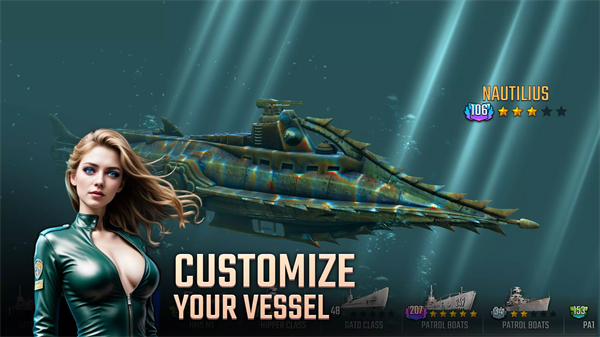 1、操控方式在直观的滑动与点击基础上,融入了需要预判的射击机制,玩家必须计算敌舰航速与鱼雷轨迹,才能实现精准的致命一击。
