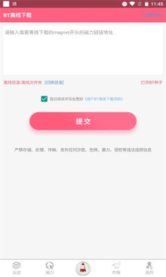 1、软件内置了强大的云端解析引擎,能够将磁力链接或BT种子中的文件快速转存至云端,再以高速通道下载到本地。