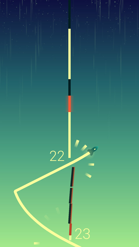 2、飞行器的转向轨迹是固定的抛物线,这要求玩家必须具备出色的空间预判能力,在点击前就于脑海中完成完整的路径规划。