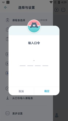 2、支持通过生成特定口令的方式,将自己精心排好的课程表快速分享给同学,或者导入他人分享的课表。
