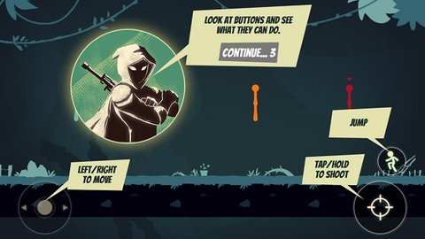 1、进入游戏后,利用屏幕左侧的虚拟摇杆控制角色移动,右侧按键分别负责瞄准射击与跳跃动作。