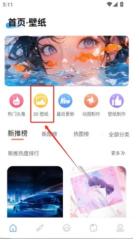 1、打开应用后,在主界面选择壁纸制作,从图库或分类中挑选一张喜欢的底图。