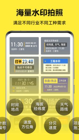 今日水印相机极简版是一款轻量化的拍摄工具,核心在于为照片和视频添加不可篡改的场景化水印,它整合了拍摄、模板、编辑与管理等环节,利用权威时间源确保水印信息的真实可靠,不管是工作考勤、工程记录还是日常打卡,都能提供直接高效的拍摄与核验服务。