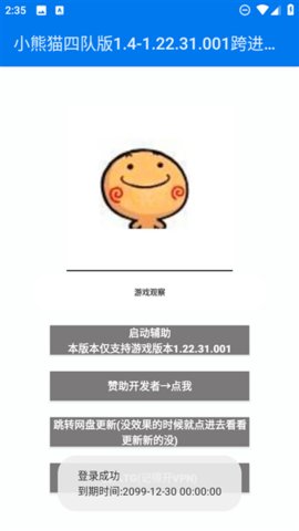 3、点击界面上的【启动辅助】按钮,稍等片刻,屏幕上会显示【登录成功】的提示。