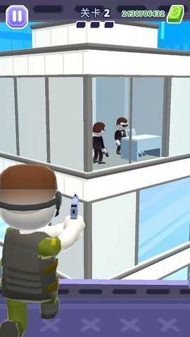 1、进入关卡后,直升机会自动环绕大楼飞行,你的任务是消灭楼内所有显示为红色的歹徒。