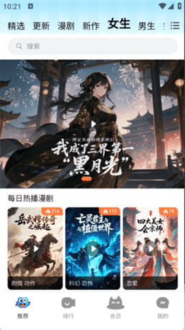 2、软件会根据个人的浏览习惯,智能地推送可能感兴趣的新番或漫画系列。