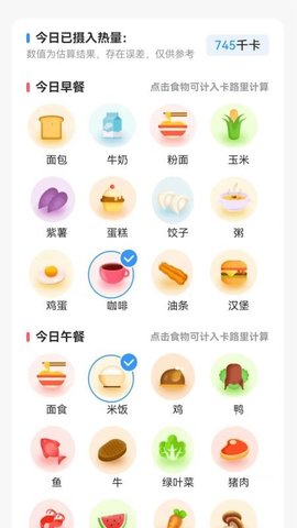 1、对录入的饮食信息能够进行智能化的热量估算,简化了繁琐的计算过程。