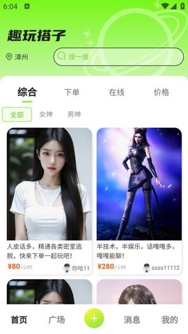 1、主页面会以信息流的形式展示不同类别的服务者,上下滑动可以浏览更多。
