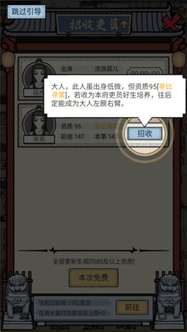 4、游戏将角色养成与放置元素相结合,即便离线,你招募的吏员也会自动处理部分事务并积累资源,减轻日常管理负担。