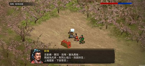 1、游戏伊始,在确认语言设置后,你将首先经历刘关张三人相遇的经典演义开篇剧情,这是故事的起点。