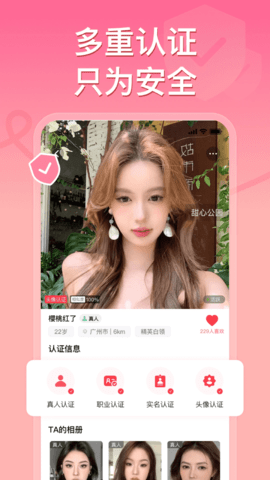 1、用户完成一系列身份验证步骤后,个人资料会显示相应的认证标识,增加可信度。