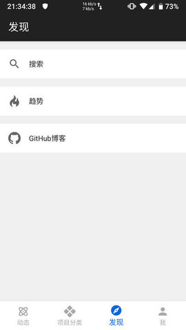 2、在主界面下滑可以刷新动态信息流,查看近期你关注的所有仓库与开发者的最新动态摘要。