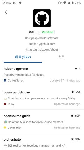 2、程序将GitHub的社交元素完整移植,关注开发者动态,接收项目更新的即时通知。