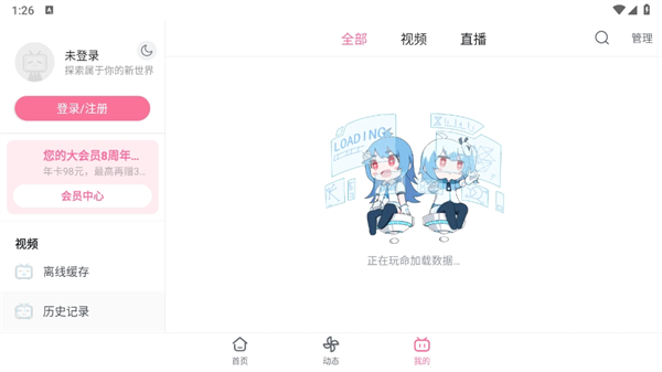 1、首次启动应用后,在登录页面使用你的哔哩哔哩账号进行授权登录,确保历史记录与收藏能够同步。