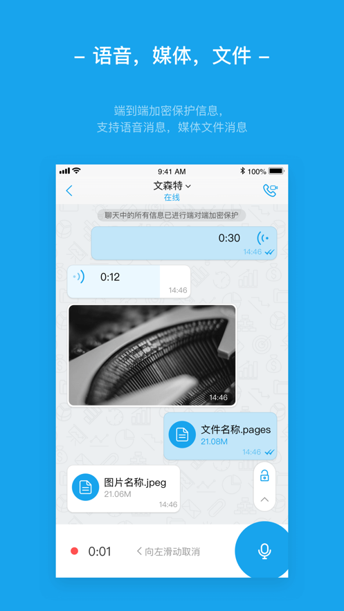4、选择聊天对象后,您可以开始发送文字、语音或视频消息,享受安全的沟通体验。