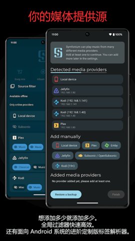 Symfonium是一款为音乐爱好者设计的高级通用音乐播放器,成为您所有分散音乐收藏的中央控制台,凭借其卓越的整合能力,能够无缝连接并统一管理来自多个音乐服务器的媒体库,涵盖了诸如Plex、Emby、Jellyfin、Subsonic等多个平台,确保您在一个地方便捷地访问所有音乐资源,提供流畅而愉悦的听觉体验。