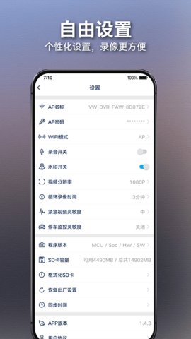 1、个性化参数调整功能让根据自身需求灵活调整记录仪的参数,包括循环录像时间、录像分辨率及紧急视频灵敏度等,以满足多样化的使用需求。