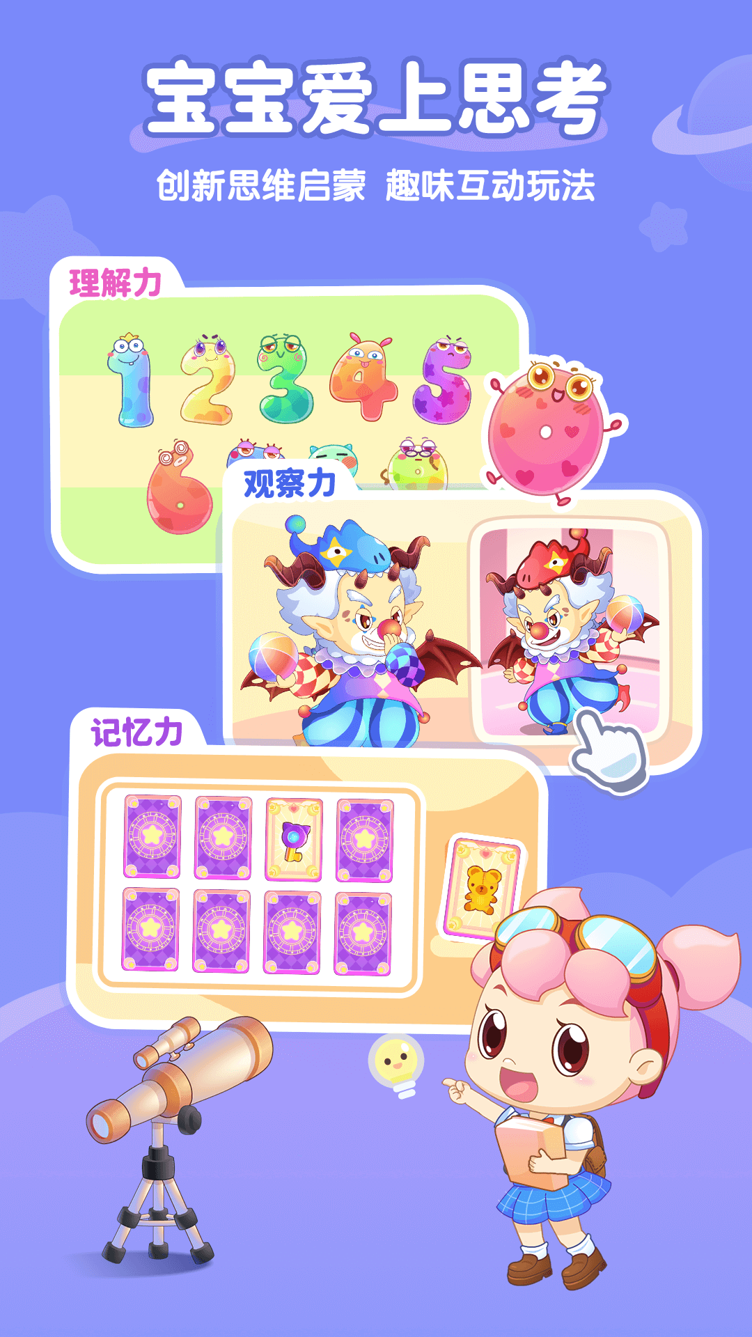3、原创互动知识设计,满足孩子在语言、逻辑、自然等多方面的启蒙需求,促进思维发展。