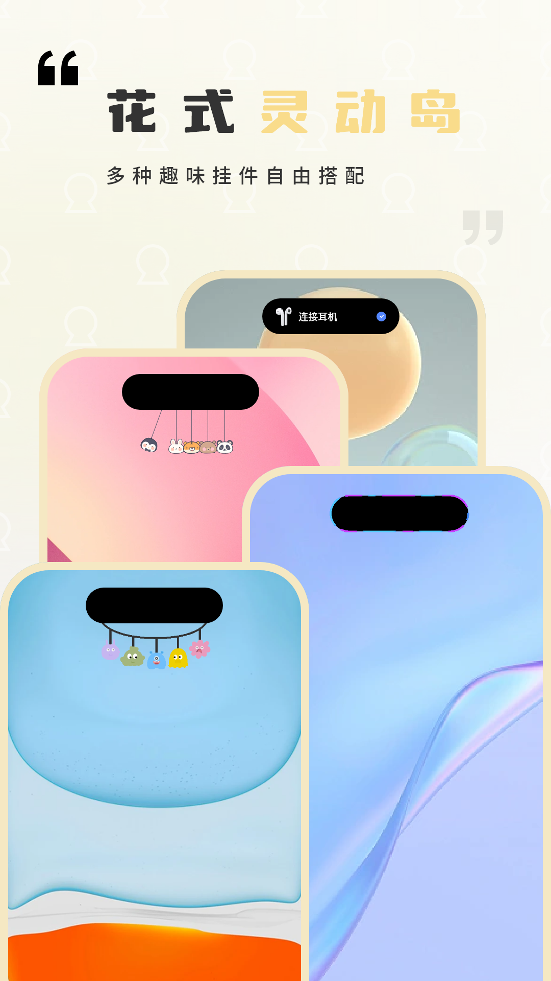 2、创意屏幕刘海支持自定义显示内容,根据喜好添加个性化挂件,增添桌面趣味。
