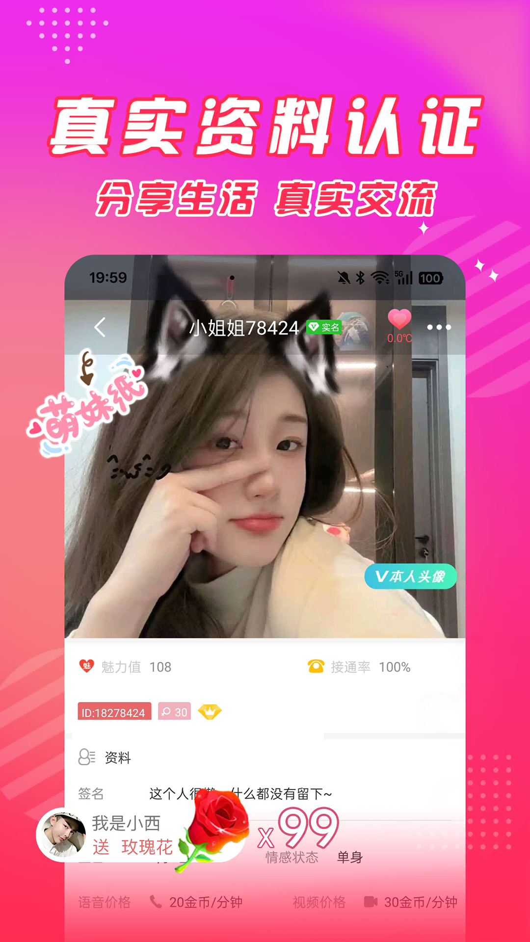 1、寻约让用户能够随时随地与陌生人进行视频聊天,轻松消除社交障碍。